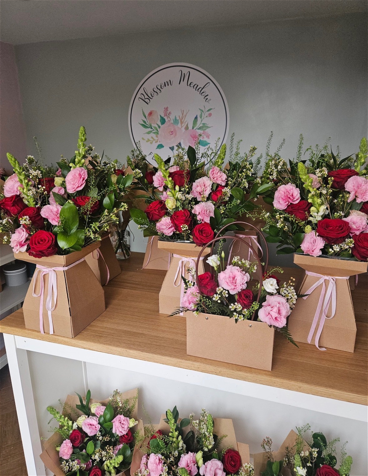 Send a beautiful bouquet of flowers this Valentine’s Day. Flowers will include beautiful, luxury red roses along with gorgeous complimentary blooms.